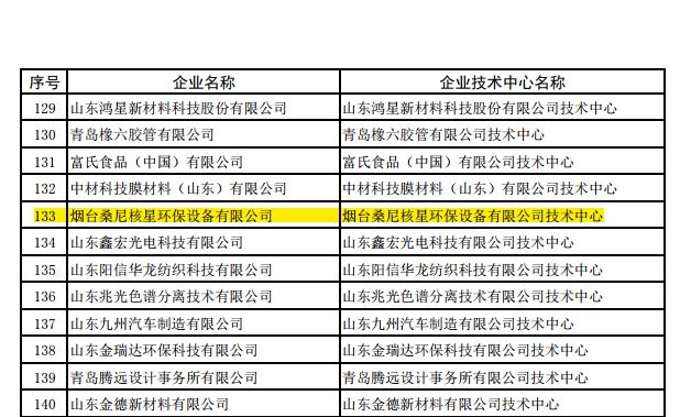 桑尼環保成功入選山東省級企業技術中心